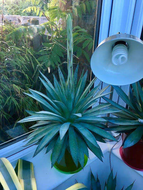 The Yucca came to us many years ago bare root and needing TLC so it stayed in the greenhouse for quite some time. Not long after being repotted it flowered which took up a lot of energy from an already ailing plant. And instead of re-rooting, all pre existing roots that it had rotted away instead. It was a slow death for the poor plant as it lingered in the greenhouse for years, finally succumbing this spring despite being given special care all through those times. Nevermind. And so the remaining trunk is now stashed with other architectural lifeless plant bodies in the utility area.