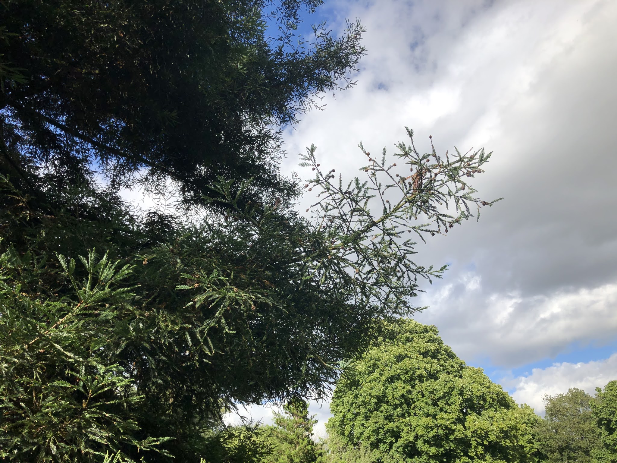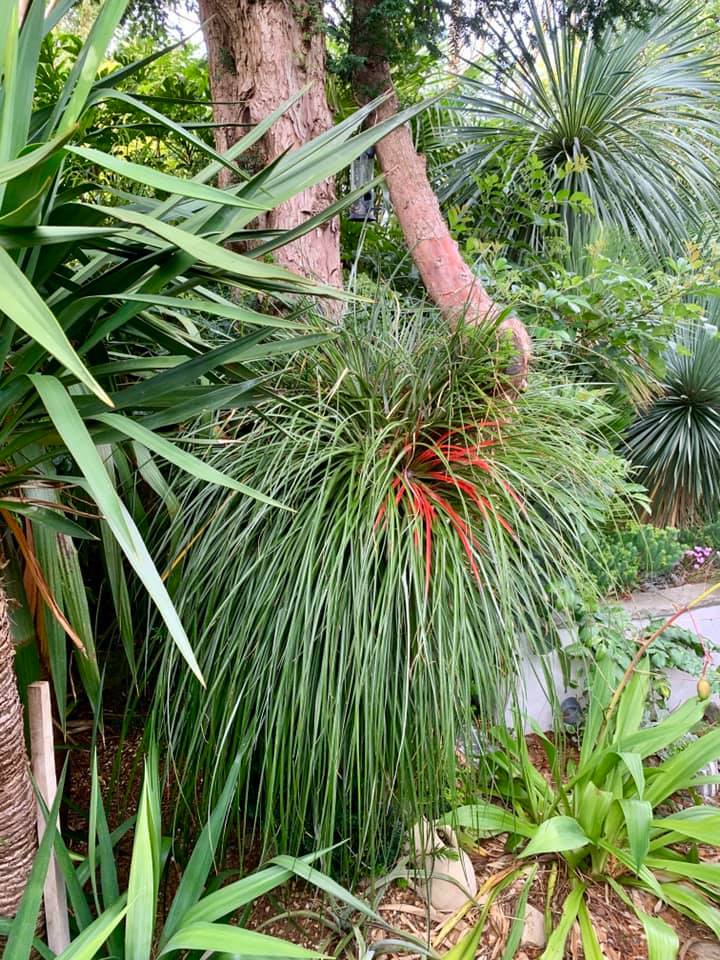 Deciding on what to do we remembered that as well as being quite happy in a pot or the ground in good conditions, that it also grows as an epiphyte in its natural habitats. As a result we decided to see how it would respond in the adjacent Taxus bacatta tree. We have been asked how we attached it and created a suitable planting spot, but the reality is somewhat simpler. We left the existing rootball intact and lodged it in a three way fork in the branches.