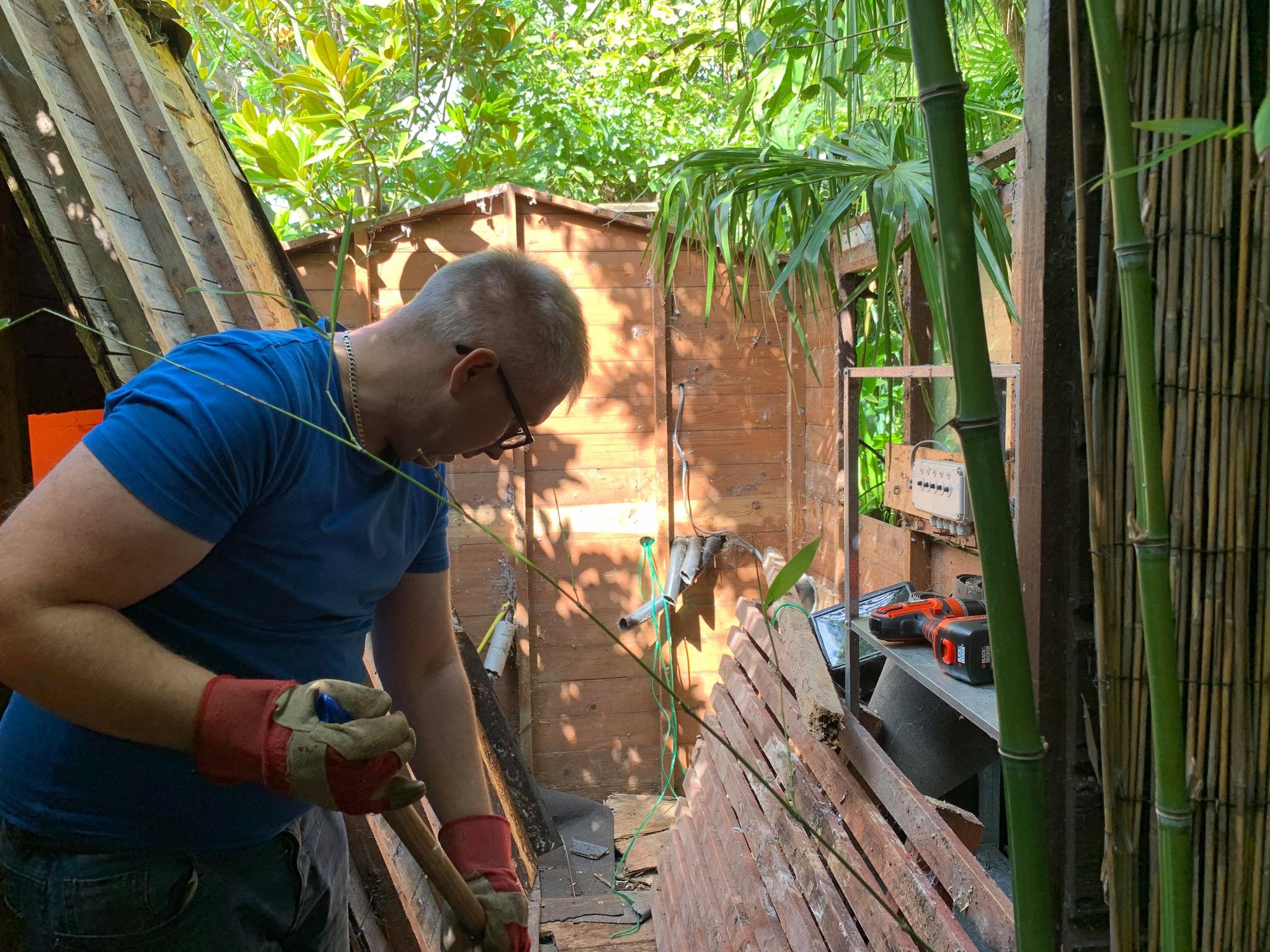 The initial focus was on replacing the old fences and clearing the somewhat ramshackle old shed adjacent to the pond. The shed was inherited when we moved into our home in 2005 and has had various repairs over the years. Sadly it was beyond saving, with woodworm and rot overtaking the timbers.