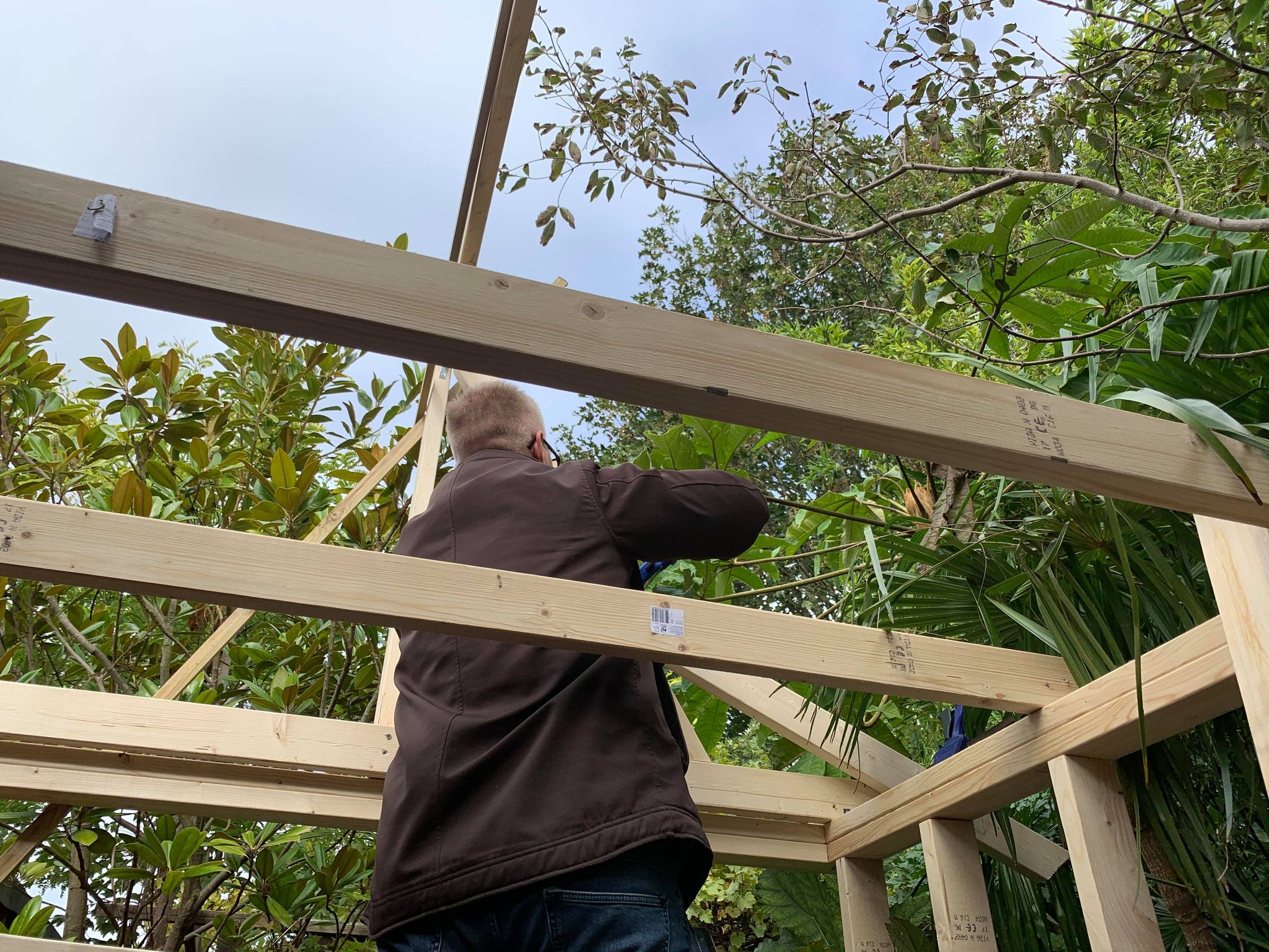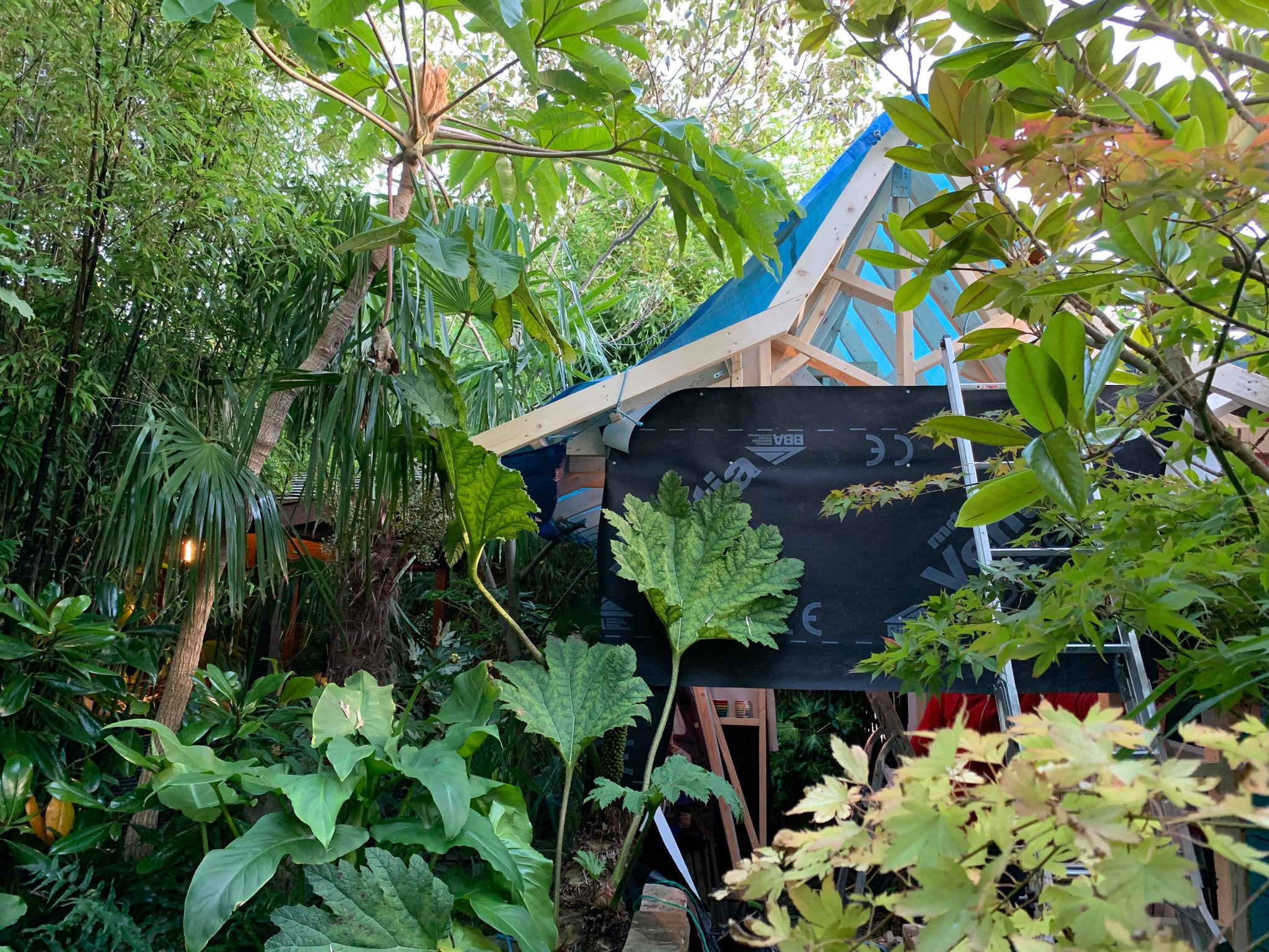 With a tarpaulin keeping the frame dry, we wrapped it in a membrane.