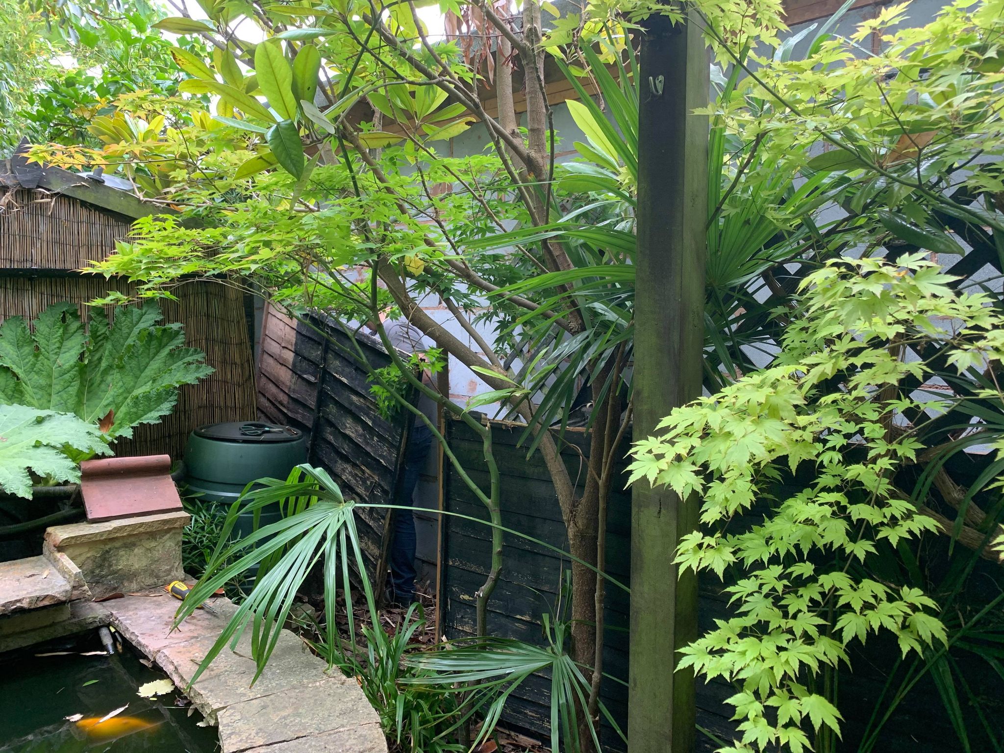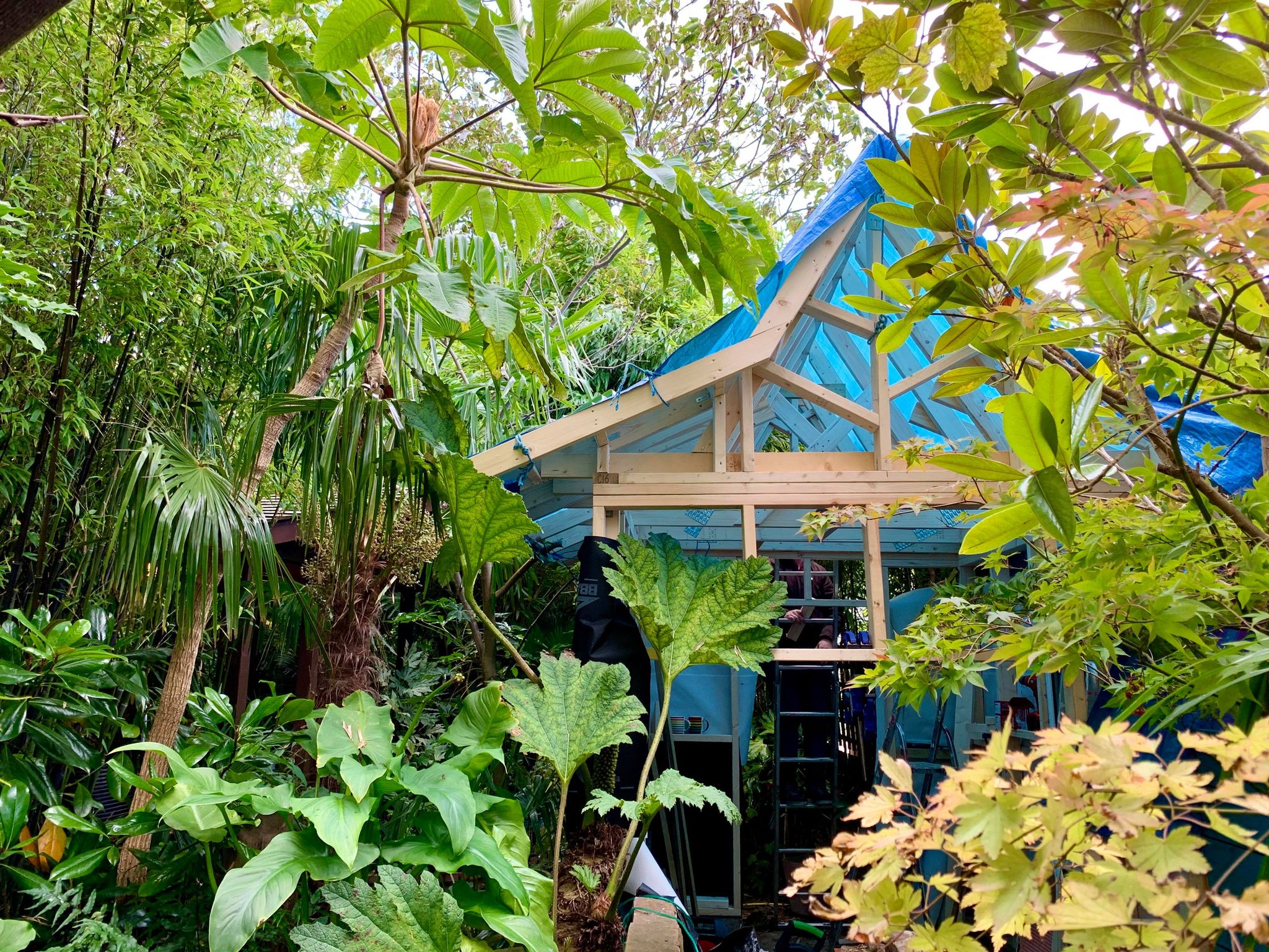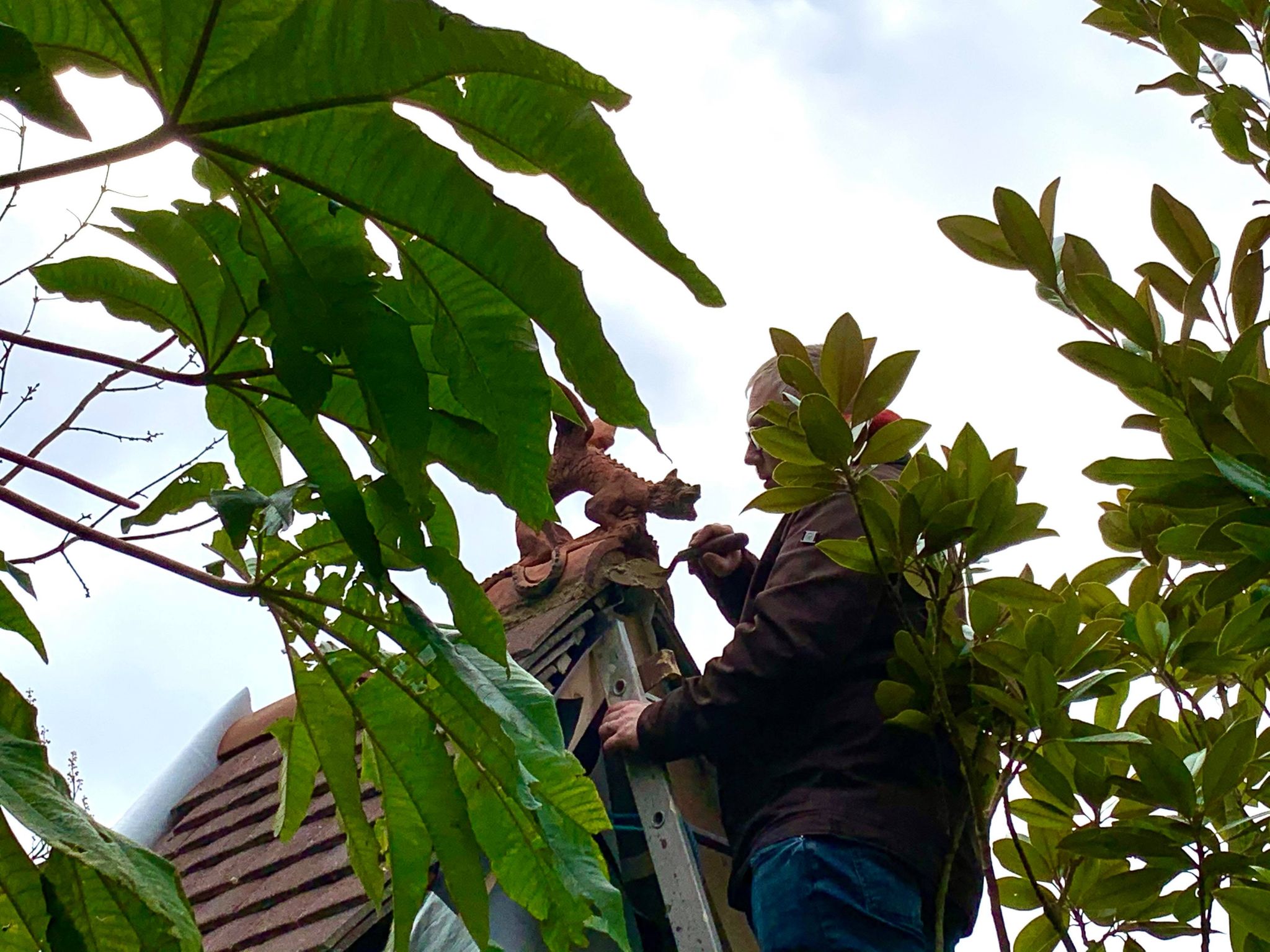 To finish off the roof on the pond side, a decorative finial was selected. We spent a lot of time deciding what style to go for, the colour, as well as the size. Wanting something that didn't look too twee, but also not too big, but still noticeable. We think this little dragon fits in with the rest of the garden without being too over the top or disney-esque.