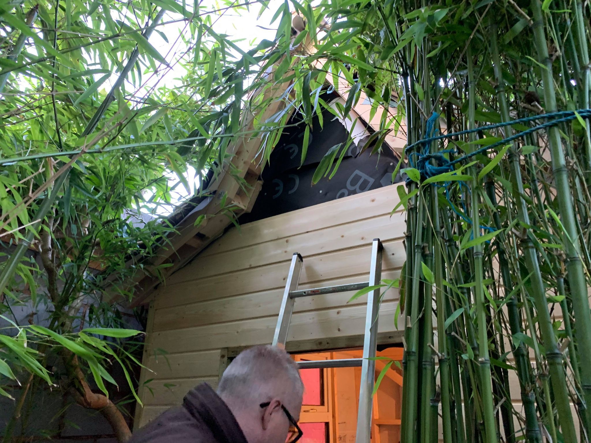 That neighbouring shed proved a useful alternative to a scaffold when tiling that side of the building.