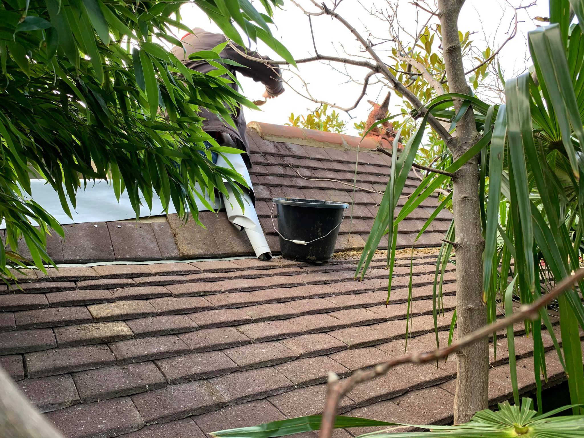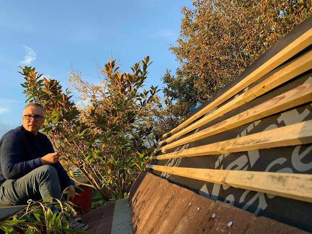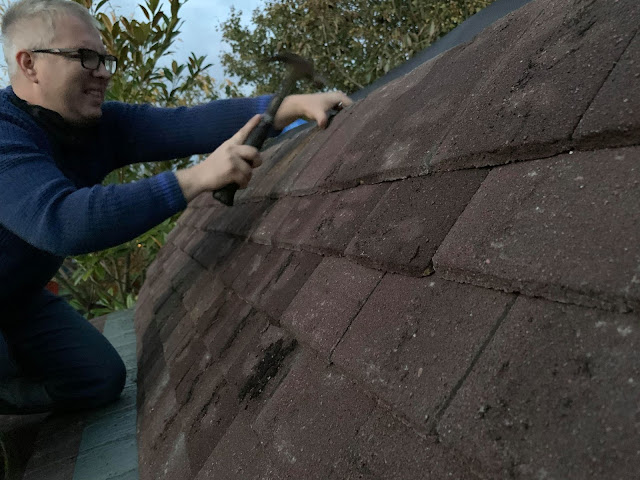 The garden side proved a little trickier to tile. We didn't really have space to erect a scaffold, so worked from the inside, tiling the roof in sections.