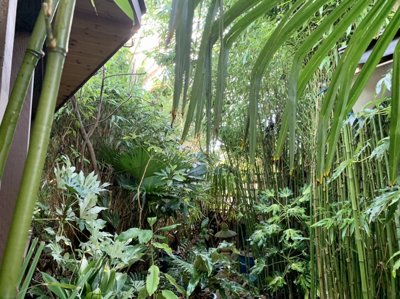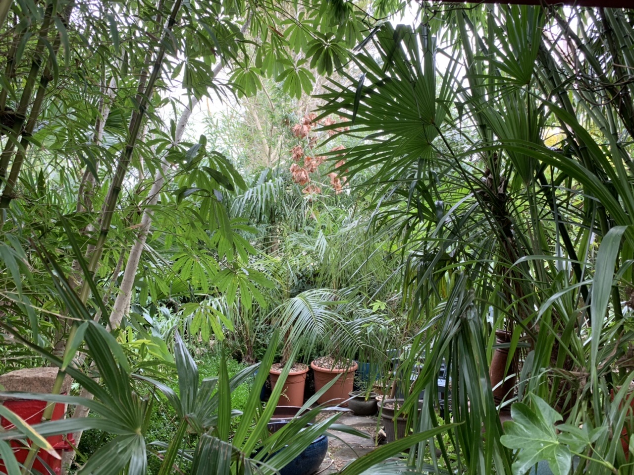| Pardon the lack of staging. Our garden project is entering the mess stage so potted plants are all over the place, like these palms temporarily relocated to our middle patio |