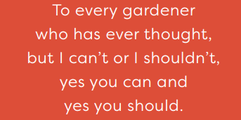 She then profiles maverick gardening characters who went on to create amazing gardens against the odds of their situation then to pave the way for others to be 'fearless' too in creating their own outdoor space with plants. And to further guide the reader into this way of thinking, commandments are outlined that is meant to richly encourage the reader to go ahead with this approach to gardening.