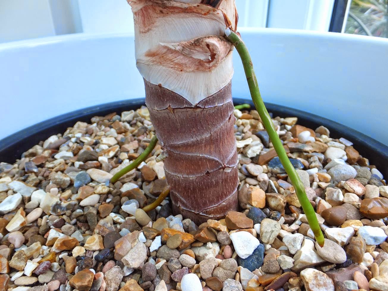 The Yucca came to us many years ago bare root and needing TLC so it stayed in the greenhouse for quite some time. Not long after being repotted it flowered which took up a lot of energy from an already ailing plant. And instead of re-rooting, all pre existing roots that it had rotted away instead. It was a slow death for the poor plant as it lingered in the greenhouse for years, finally succumbing this spring despite being given special care all through those times. Nevermind. And so the remaining trunk is now stashed with other architectural lifeless plant bodies in the utility area.