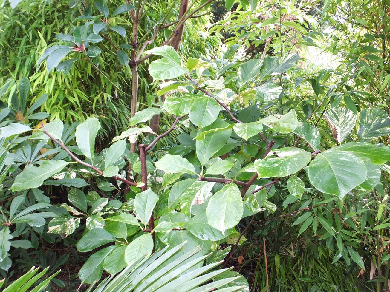 The new red pergola is also looking as it should now, surrounded by lush growth, in particular from the Schefflera rhododendrifolia to the right hand side.