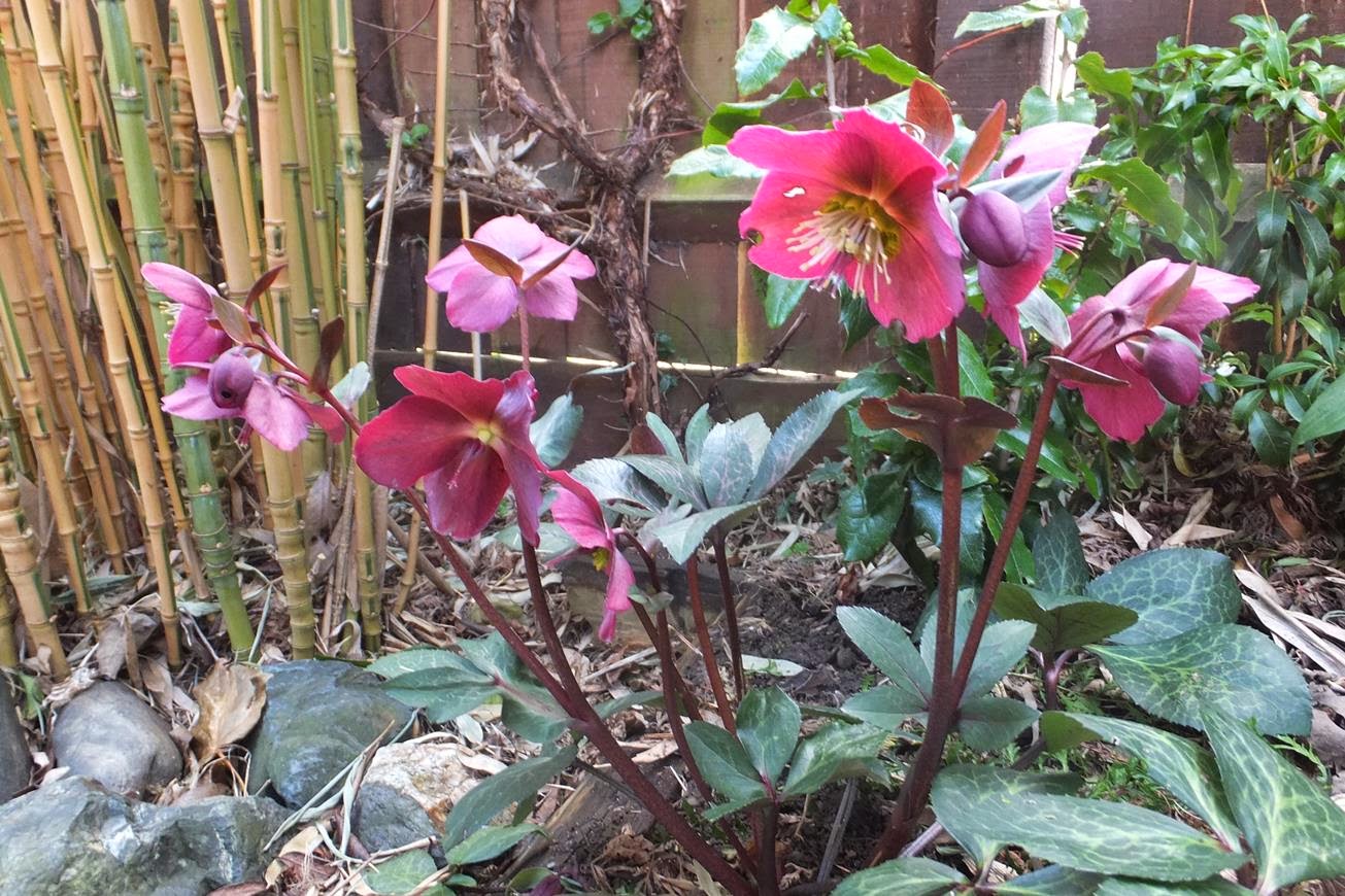 | Helleborus 'Anna's Red' still at it with its pretty blooms! |
