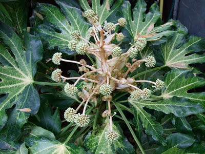One of the staple plants to many British Exotic Gardens is Fatsia japonica, a glossy large leafed araliad from Japan. It is quite a tough and hardy plant with interesting foliage and flowers. There are several variegated varieties which are also reasonably hardy. Whist F. japonica is the most well known Fatsia, it is not the only member of the genus. Fatsia is a small genus with two other members, F. polycarpa and F. oligocarpella.