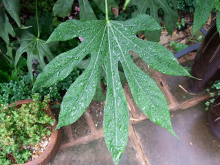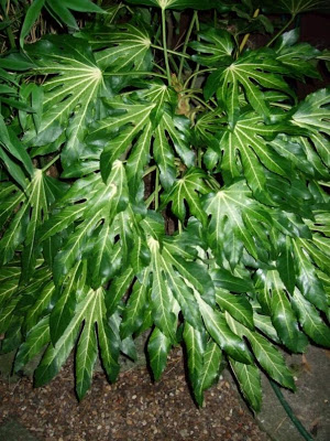 Fatsia japonica has several different varieties available to the exotic gardener in the UK, other than the plain green form. Whilst the other types often have more dramatic colours the plain green is very robust and seems to be quicker and maybe slightly hardier.