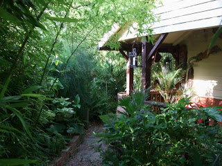 We built the jungle hut veranda in 2009, before we started this blog although captured it in photos at the time. See here for the photos. I loved using natural bamboo in the balustrading and must have taken dozens of photos that illustrate it, however I don't think I took any like this one, a simple photo but also a lovely composition picking up the natural splits in the bamboo poles with the plants firmly on the other side.