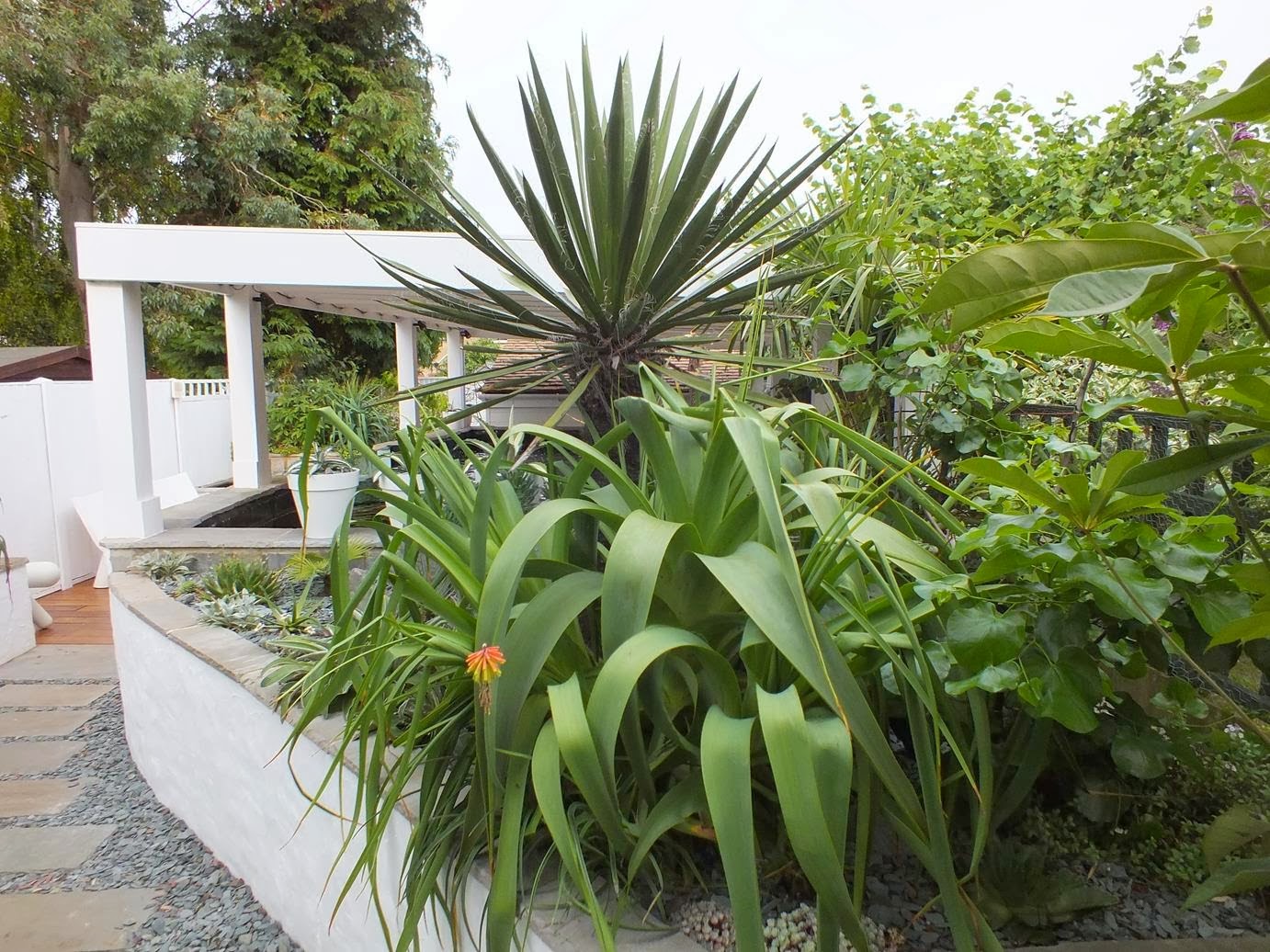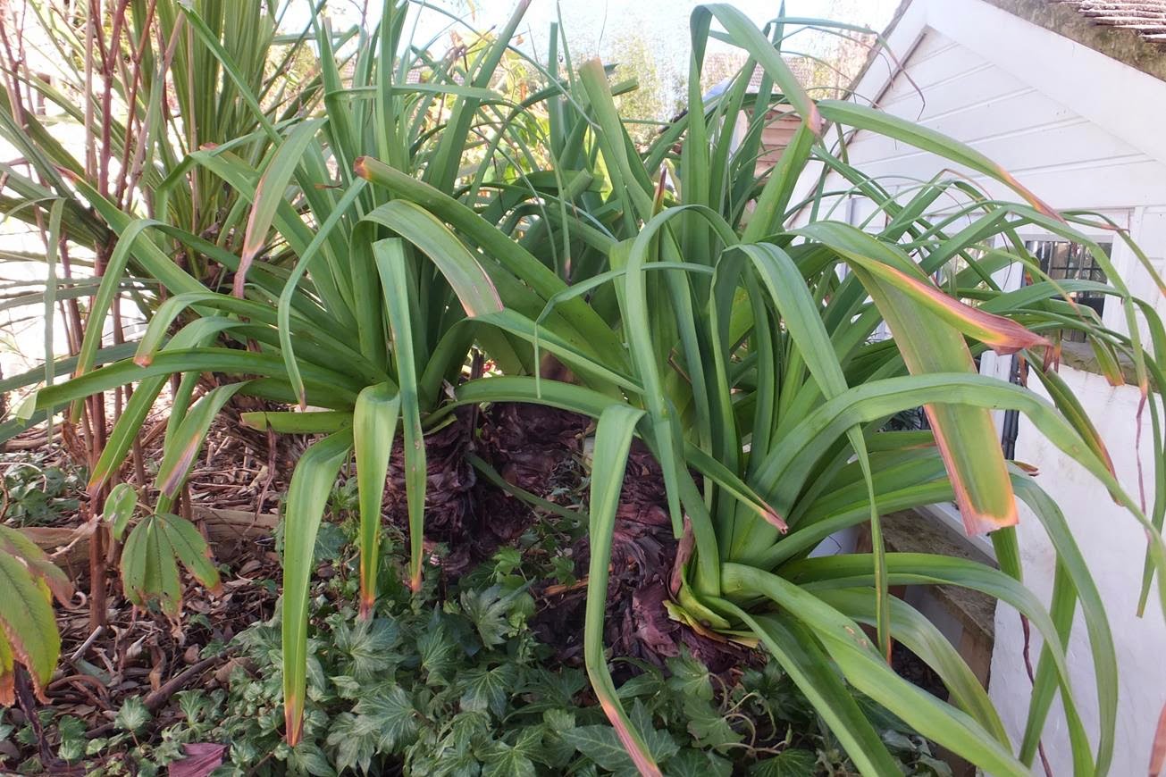 First day of March yesterday and although I'm still feeling groggy from winter I got stuck in did some tidying up in the garden. A few plants got trimmed then I turned my attention to the Kniphofia caulescens we have on the third and first raised bed near the koi pond.