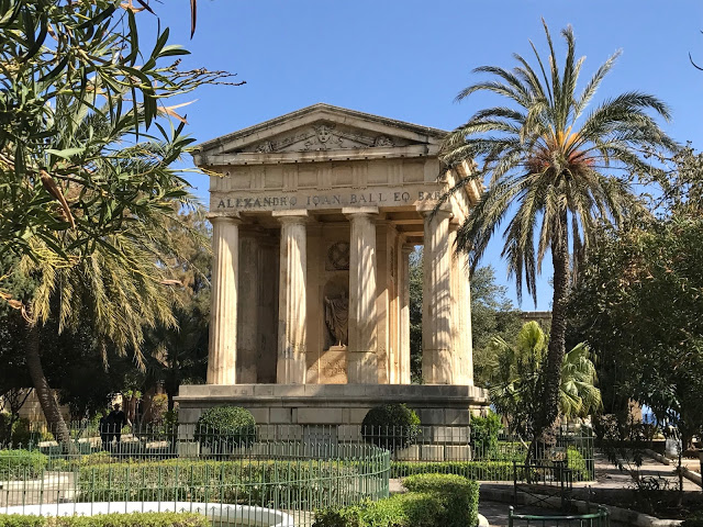 Lower Barrakka Gardens provides a great view of the Grand Harbour and the neighbouring city of Vittoriosa. At the centre of the garden is the Monument to Sir Alexander Ball, pictured above which is a neoclassical temple located at the centre of the garden.