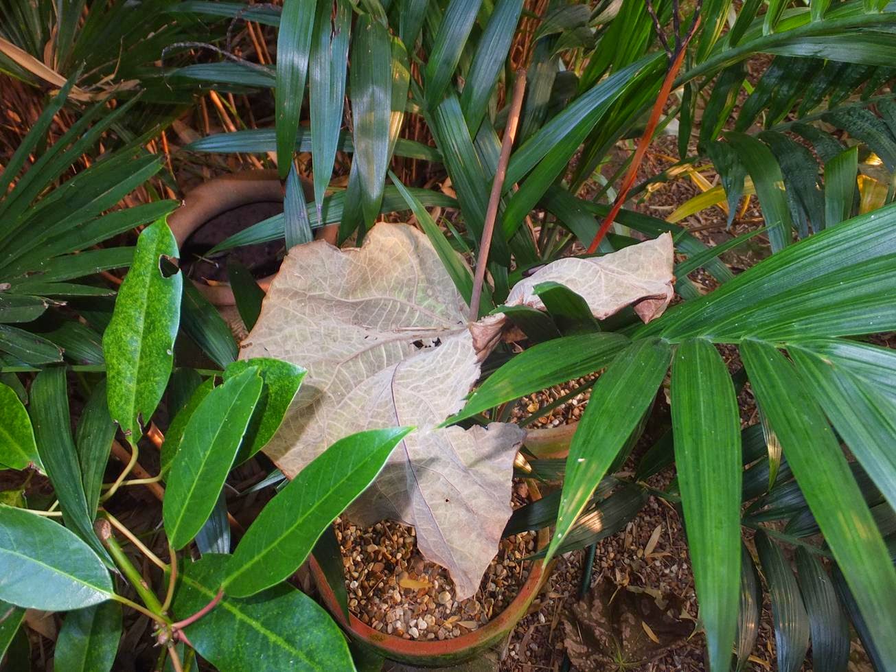 | Stool almost to the ground in spring and let one bud get going and it will produce gigantic leaves. This one at Don's garden |