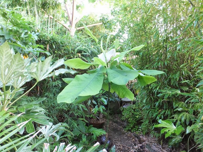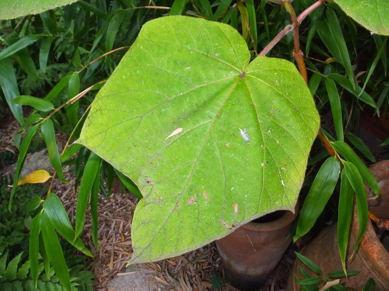 Which reminds me we have another type of foxglove tree that we bought from Beeches Nursery earlier in the year, Paulownia kawakamii. It looks very similar, almost indistinguishable from P. tomentosa until you touch the leaves of the former which is sticky. We haven't decided yet where to plant it so for now it lives inside the large vase in the jungle area of the garden.