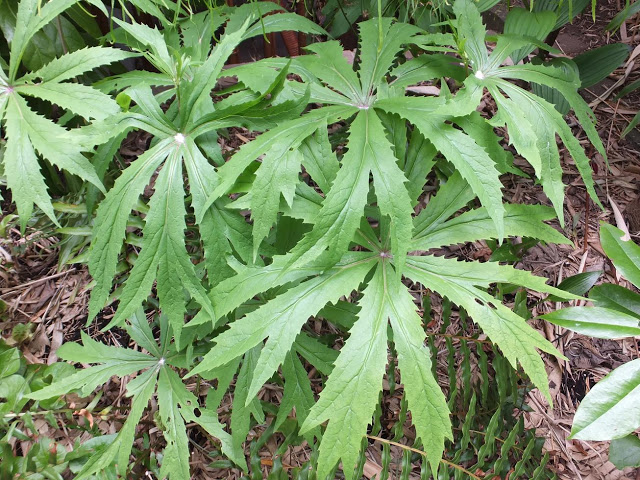 Speaking of 'not a hundred percent certain', if the plant above is not a 'Soft Caress', what else could it be? Apparently Mahonia 'Soft Caress' is a selection from plants identified as Mahonia eurybracteata var. ganpinensis, so there's a possibility that the plant above is actually the latter and not exactly the former. If that's the the case then the ID is almost but not quite....