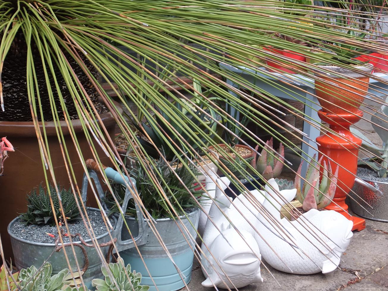 There was a point that I actually had more succulents that needed a pot than I had...pots. Plus I wanted to beef up our display with more splashes of bright colours. It's amazing how difficult that can be (at least here) especially when you go out there and deliberately look out for them.