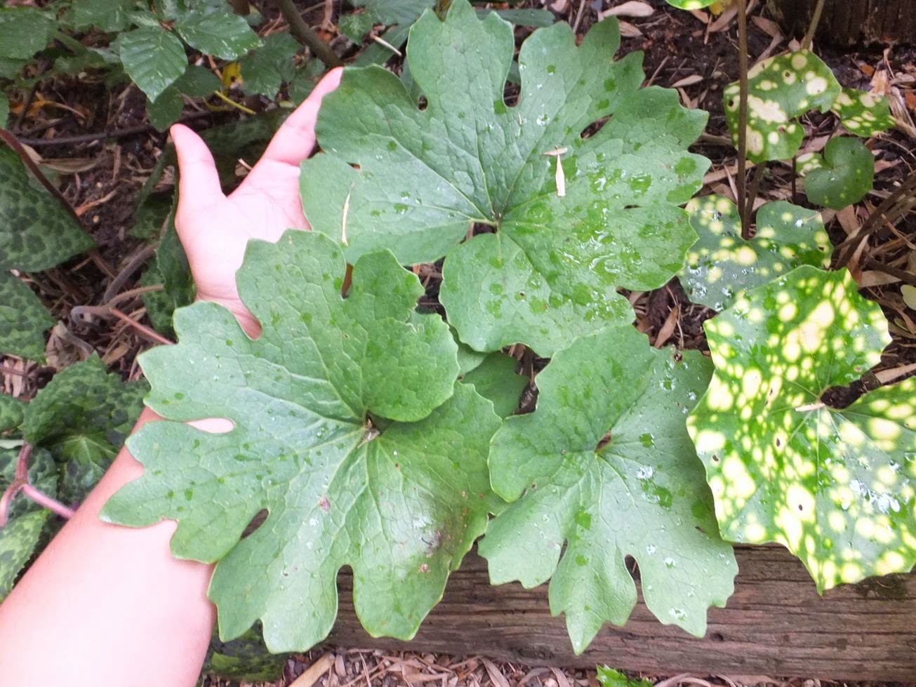 Grown mainly for it's spring flowers but well worth it for it's interesting and relatively large foliage too.