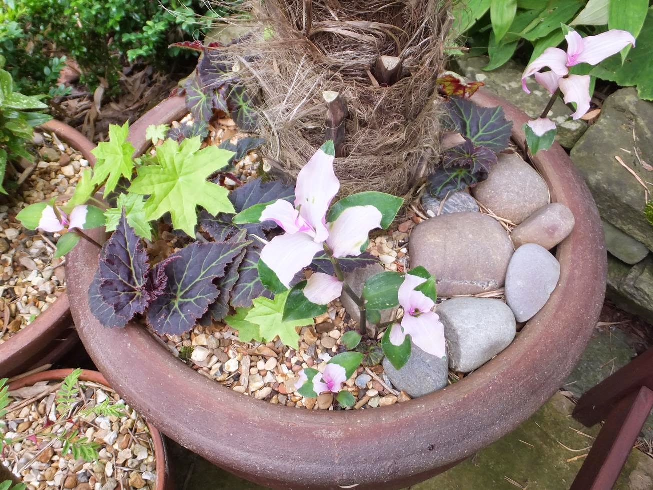 Weeds most welcome! I didn't plant anything here on the periphery of the pot and at the base of the palm but much to my surprise the 'weeds' that did grow on it were nice ones and definitely most welcome!