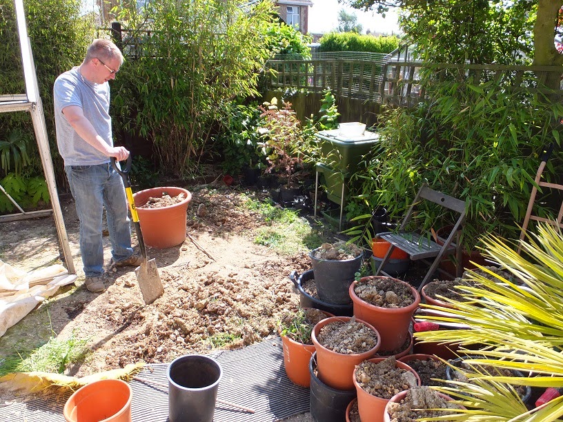 I really ought to get a potting bench. This squatting malarkey isn't good for my back long term. Still one has to smile...