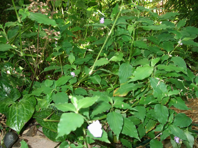 We planted out Tinantia pringlei a few years ago and found that it reliably comes back in the spring, and even stronger that before. And it self seeds too, popping out on other places but not a nuisance to thin out and remove where they are not wanted. I like the way it's purple spotted leaves cascade and gently wade it's way into other foliage within the border, helping create that lush look. And in late summer you are rewarded with little purple flowers.