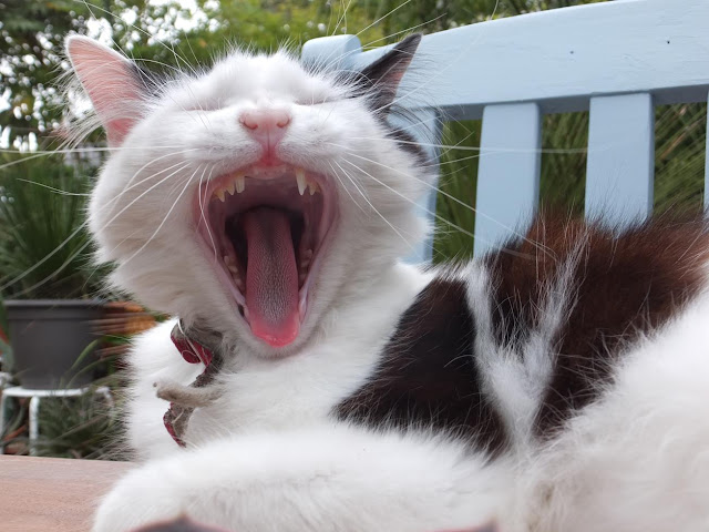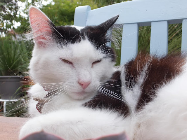 Okay, it's not really a gardening topic but since Twinkles is one of the many characters in our gardening blog I thought it would still be appropriate to feature this unusual view of her in here.