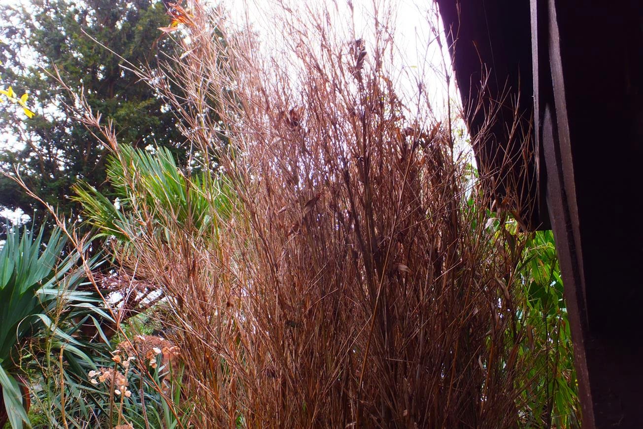 And speaking of demise after flowering, one of my favourite bamboos in the garden, a very slow growing one yet so beautiful with its bright yellow culms with green stripe on its sulcus is flowering...