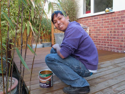 Once the pond was finished, we planned to give this a make over, sanding it down and then repaint. However I remembered my Dad's pressure washer