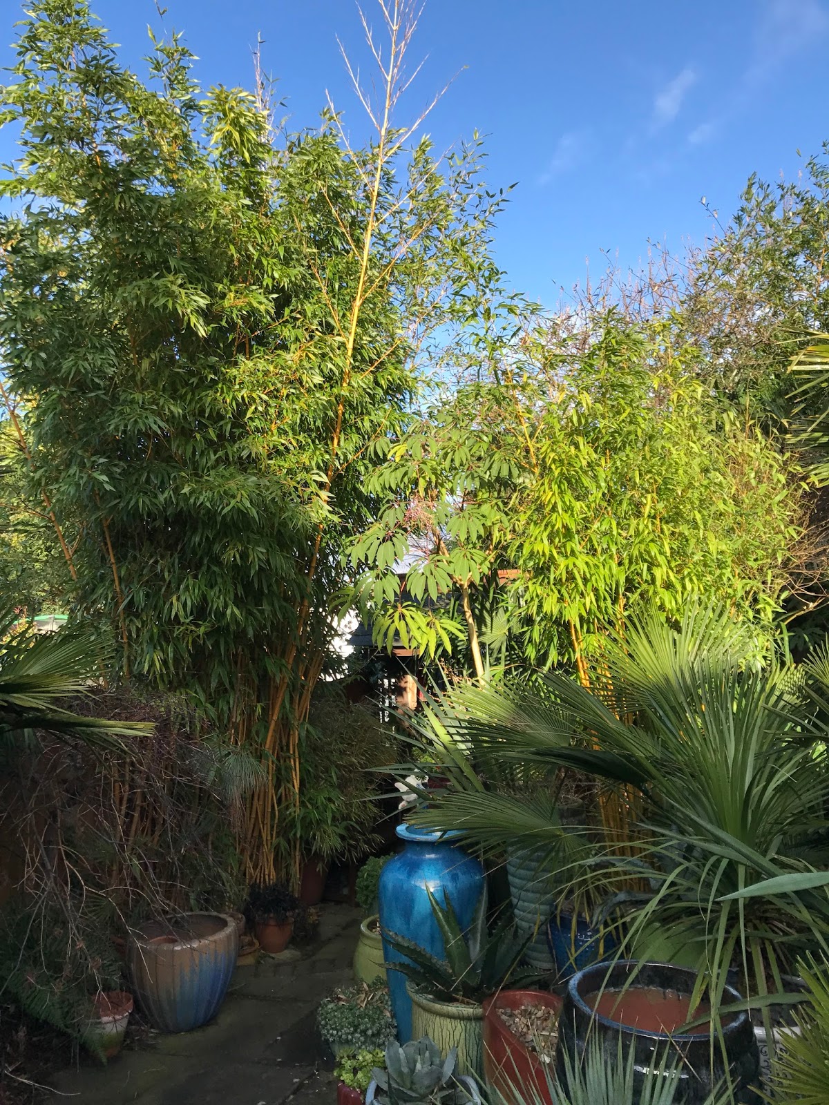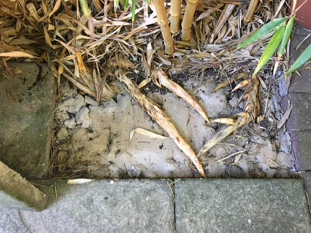 Not many gardeners nowadays would recommend or deliberately plant running bamboos near fences or in such a tight space (gardening shows here in the early noughties seemed to have the penchant for doing just that).