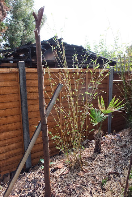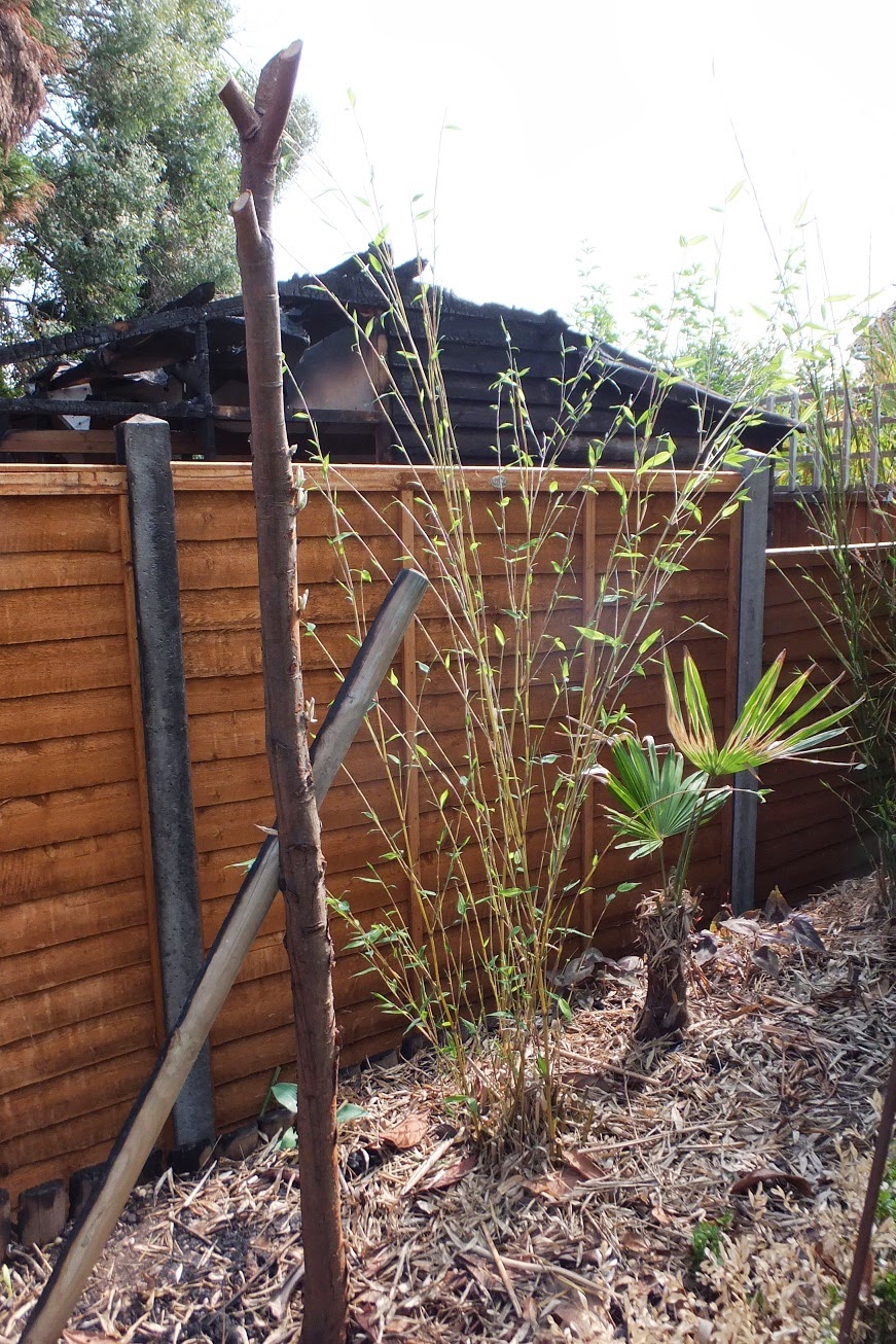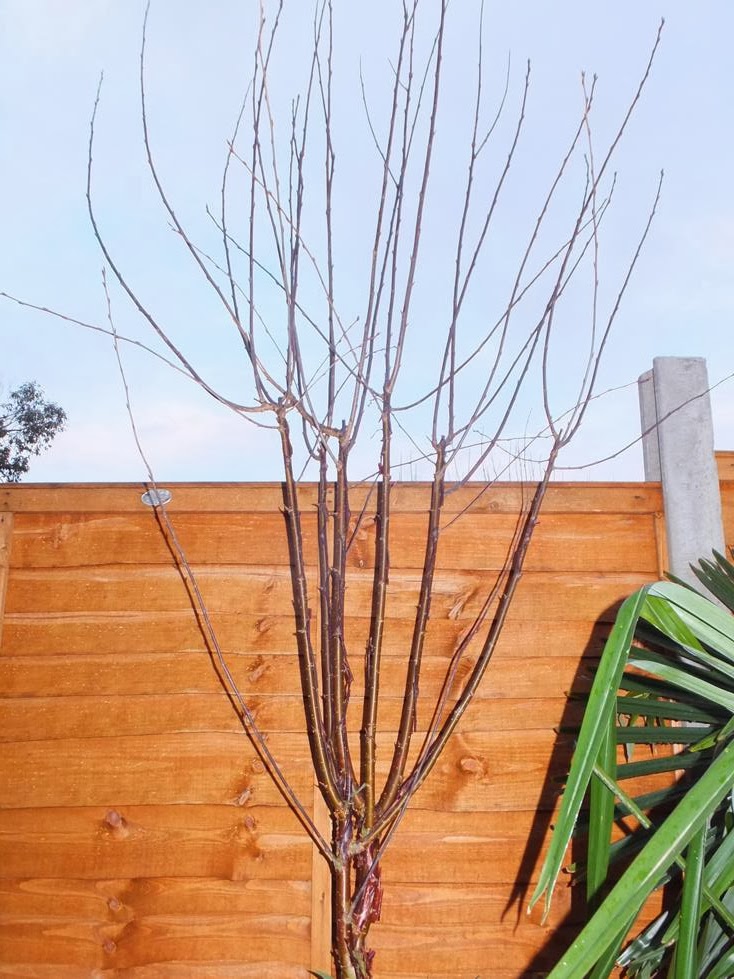 So after spending most of the day clearing and tidying up by mid afternoon we cleared enough space of an area to make way for a tree. There used to be a common elderberry tree, Sambucus canadensis growing sort of in that area and just behind the fences that provided some structure and privacy to the garden but that's gone now, perished by the fire (and rootball subsequently dug up just in case). So a replacement was necessary and this tree immediately sprung into mind. We still had about three hours of daylight left to do anything in the garden and we took advantage of this by immediately driving to a garden centre within our area that we took note of before that sells larger specimens of this tree for a reasonable price.