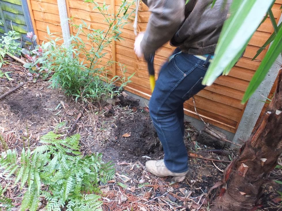 Unloaded the car, dug up a hole, then presto, there it was in its new home. We forgot to buy a tree stake then so that will follow soon.