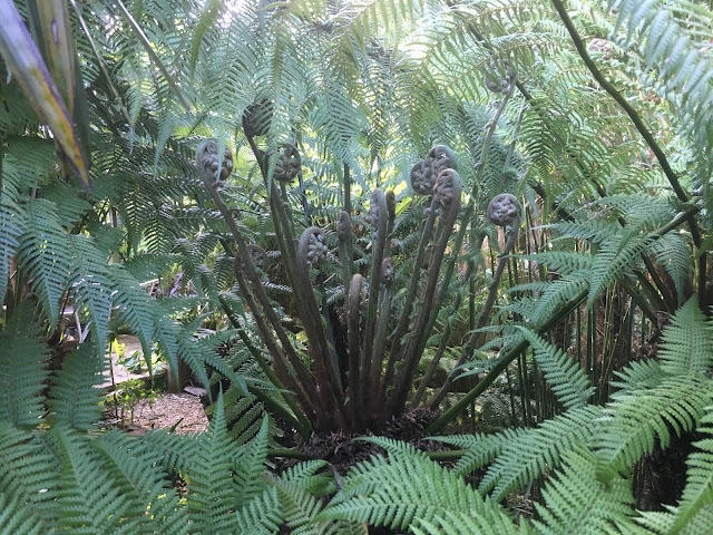It's like the long dead Cyathea australis giving the newly dead Yucca thompsoniana a cuddle, a post mortem embrace. Perhaps it is giving it commiseration or a welcome to plant hades.
