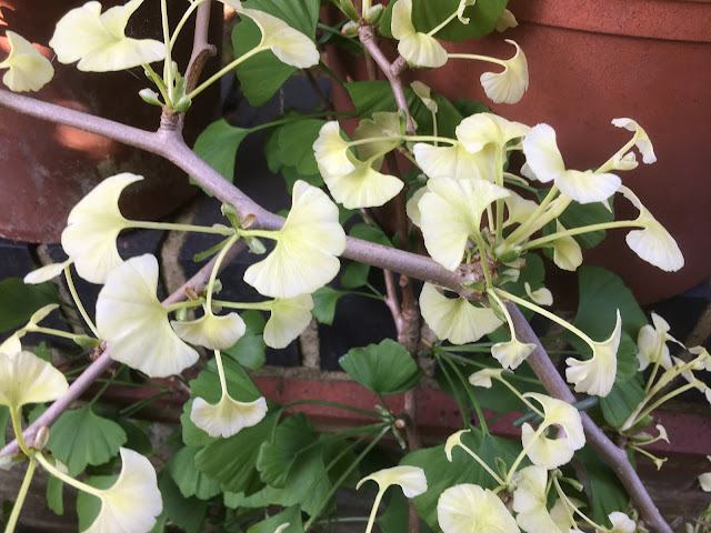 And speaking of demise after flowering, one of my favourite bamboos in the garden, a very slow growing one yet so beautiful with its bright yellow culms with green stripe on its sulcus is flowering...