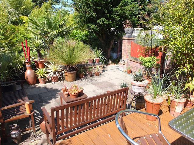 Our top patio (or terrace as a friend insists), the part of our garden that we are least content with. You would think that with it being nearest to the house it would be the first one to be developed. But no it wasn't and it's turned out to be the last.