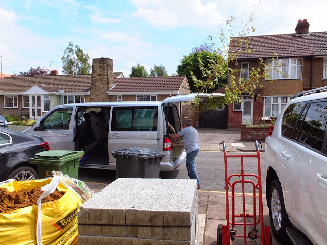 Unfortunately they were placed way above the highest point of brick posts and if we put on fence panels to totally cover them it would look silly as they will be above the posts. So we settled with new fence panels that will be at level with the posts and partially obscure those offending trellises. There's is a climber making it's way over one of them already and hopefully in no time both will be colonised and serve as just a green backdrop.
