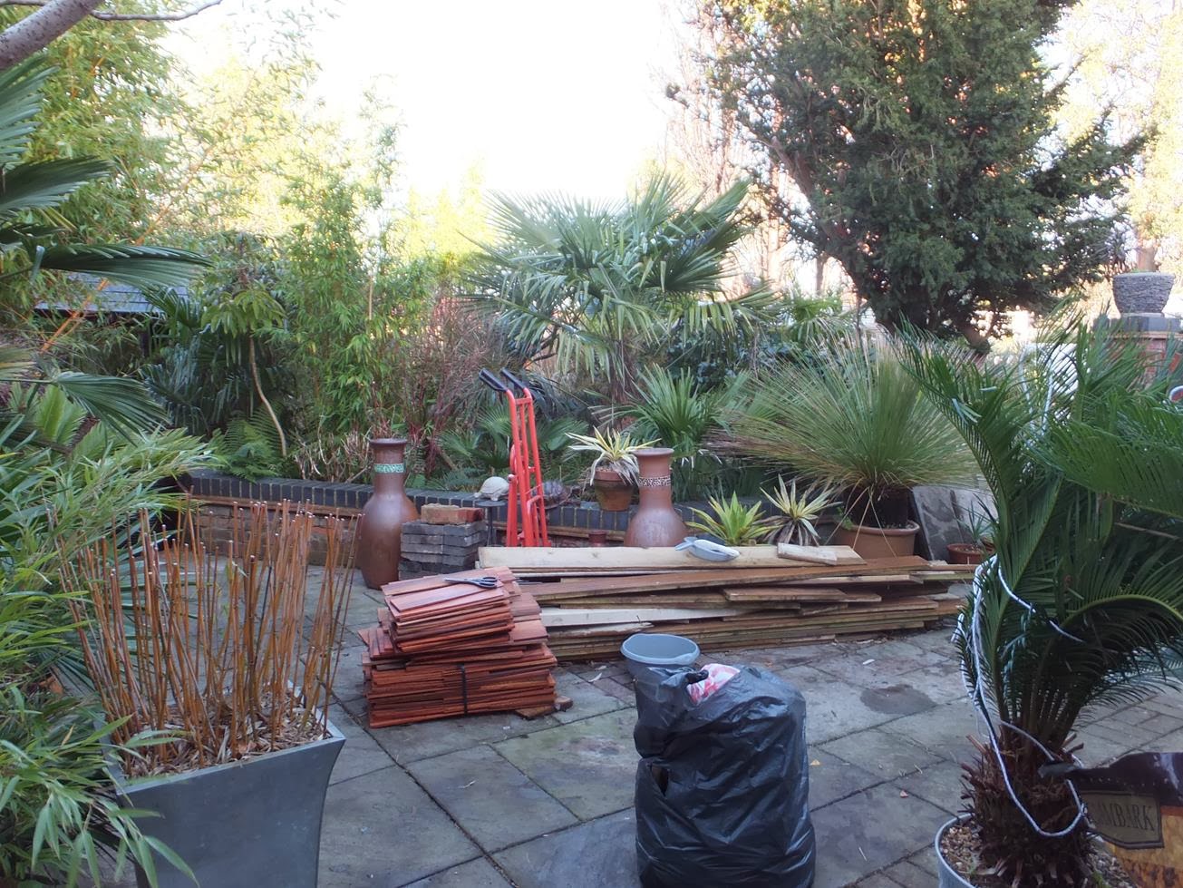 First things first though, we must figure out what to do will all these materials scattered on our patio and where to store them. And make a sensible arrangement of the patio until we're ready to give it a proper makeover.