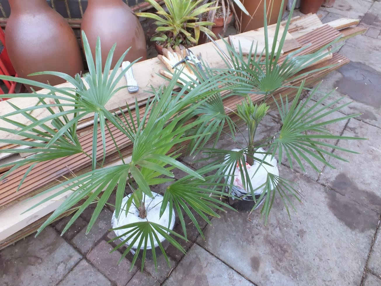Anyway, we have been buying a few new palms in the past few weeks with the biggest haul of our recent purchases coming from the winter sales at the Palm Centre. It was too dark to take photos of our haul when we got home last night so we just unloaded the car and freed the palms from their cling film bondage and left the picture taking until today.