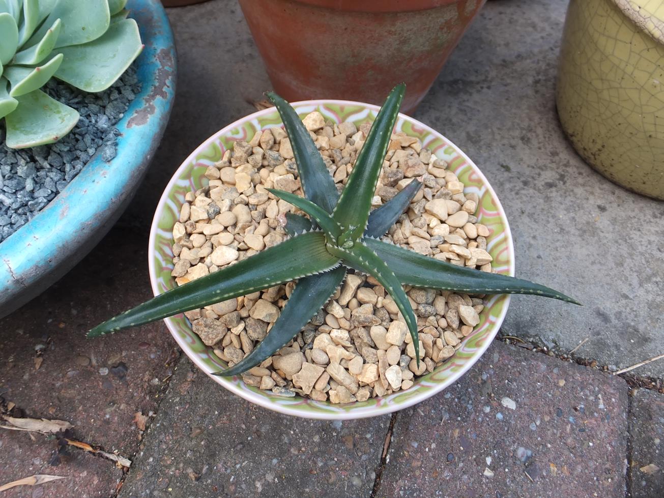 This Chamaerops humilis growing in a pot which had strangely spear pulled last winter even though it was a relatively mild one. The good thing is it is clearly recovering but pushing out new growth. Oddly though, it has also pushed out an inflorescence albeit a small one at the same time. Silly palm, couldn't make up its mind.