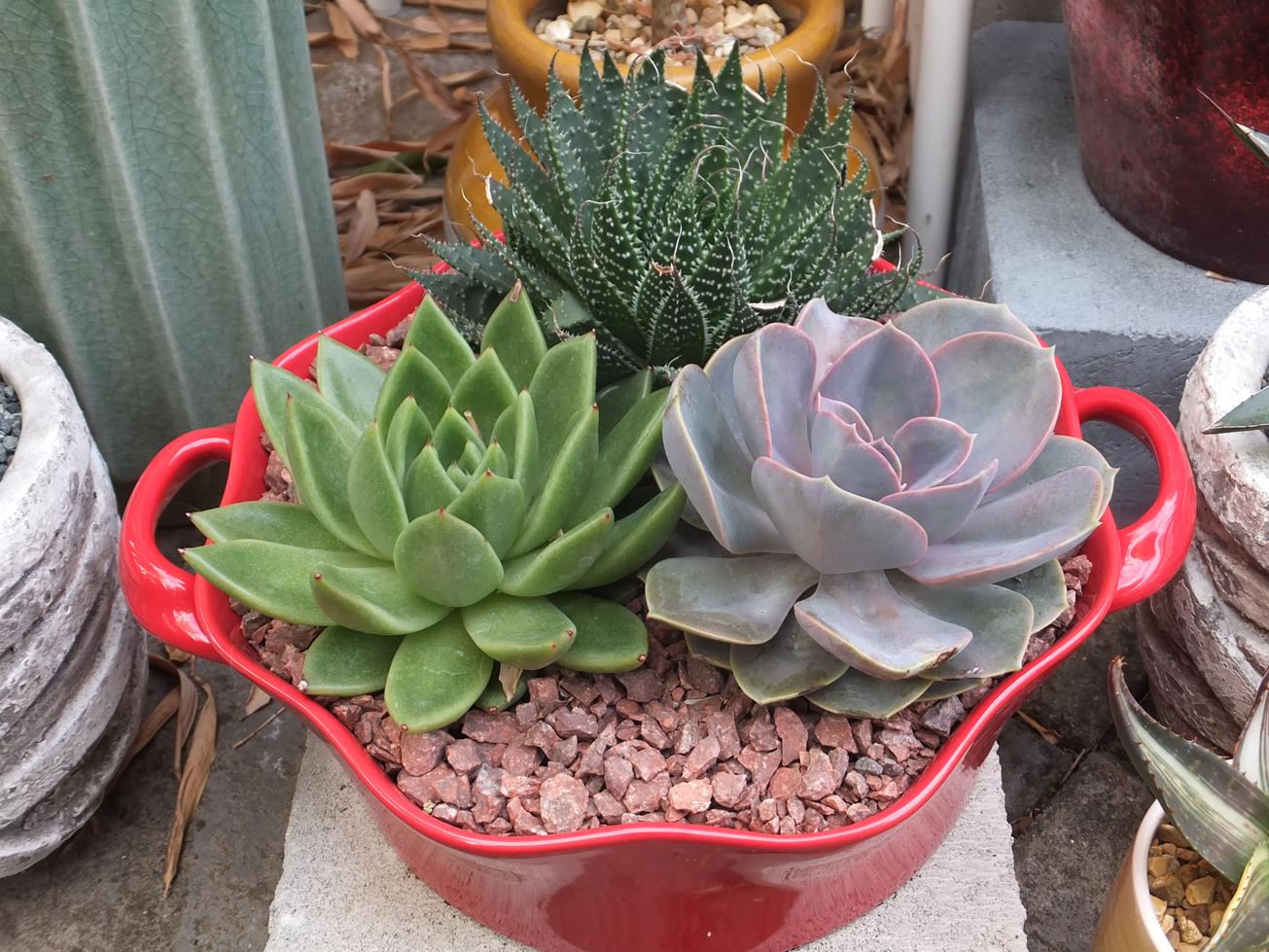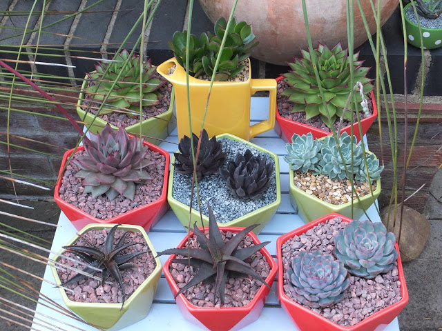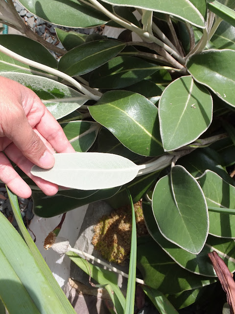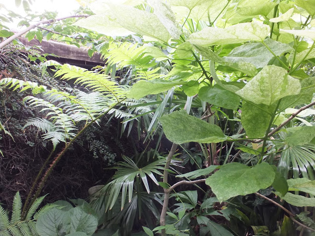 And back on to the second raised bed, the Schefflera rhododendrifolia is looking extra good with it's new growth and flush of leaves.