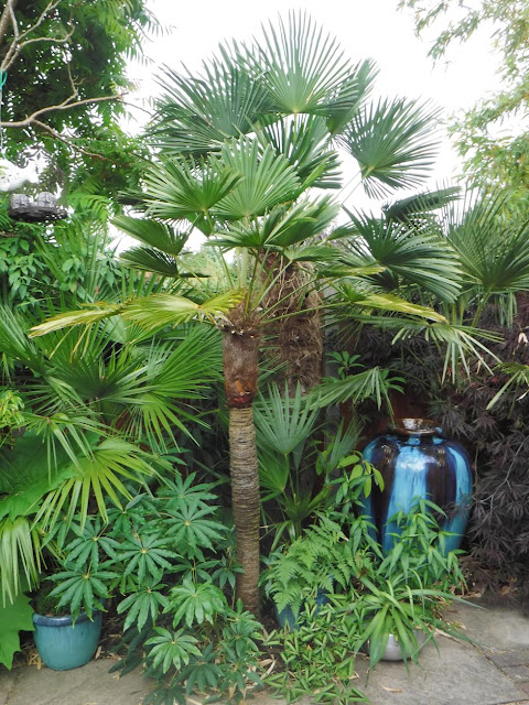 And jumping on to the middle patio, I spotted this Trachycarpus princeps hybrid positively GLOWing as it catches the morning light. Lovely!