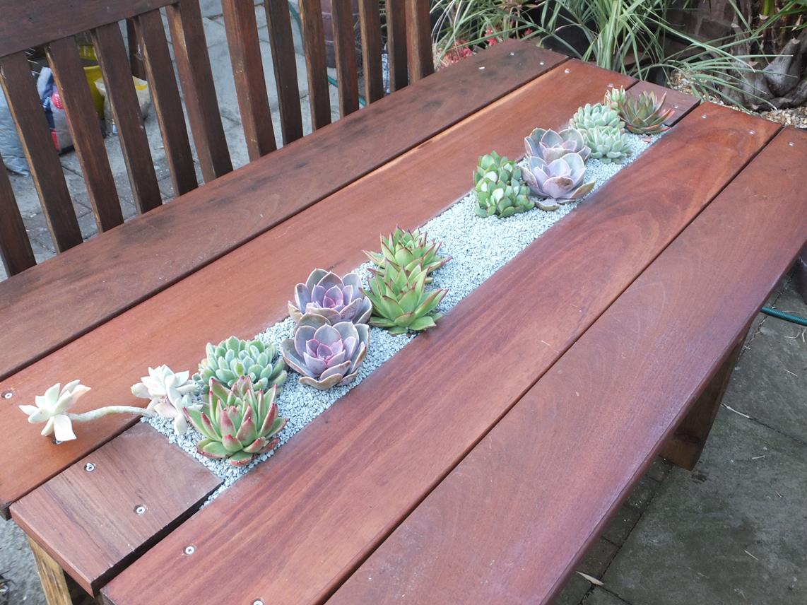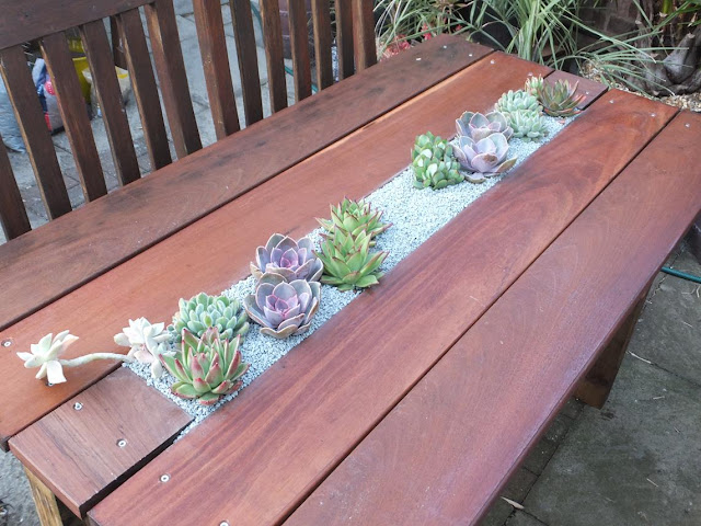 I didn't get to finish the planting of the succulent table the other evening so the following evening I finally managed to and here it is now...