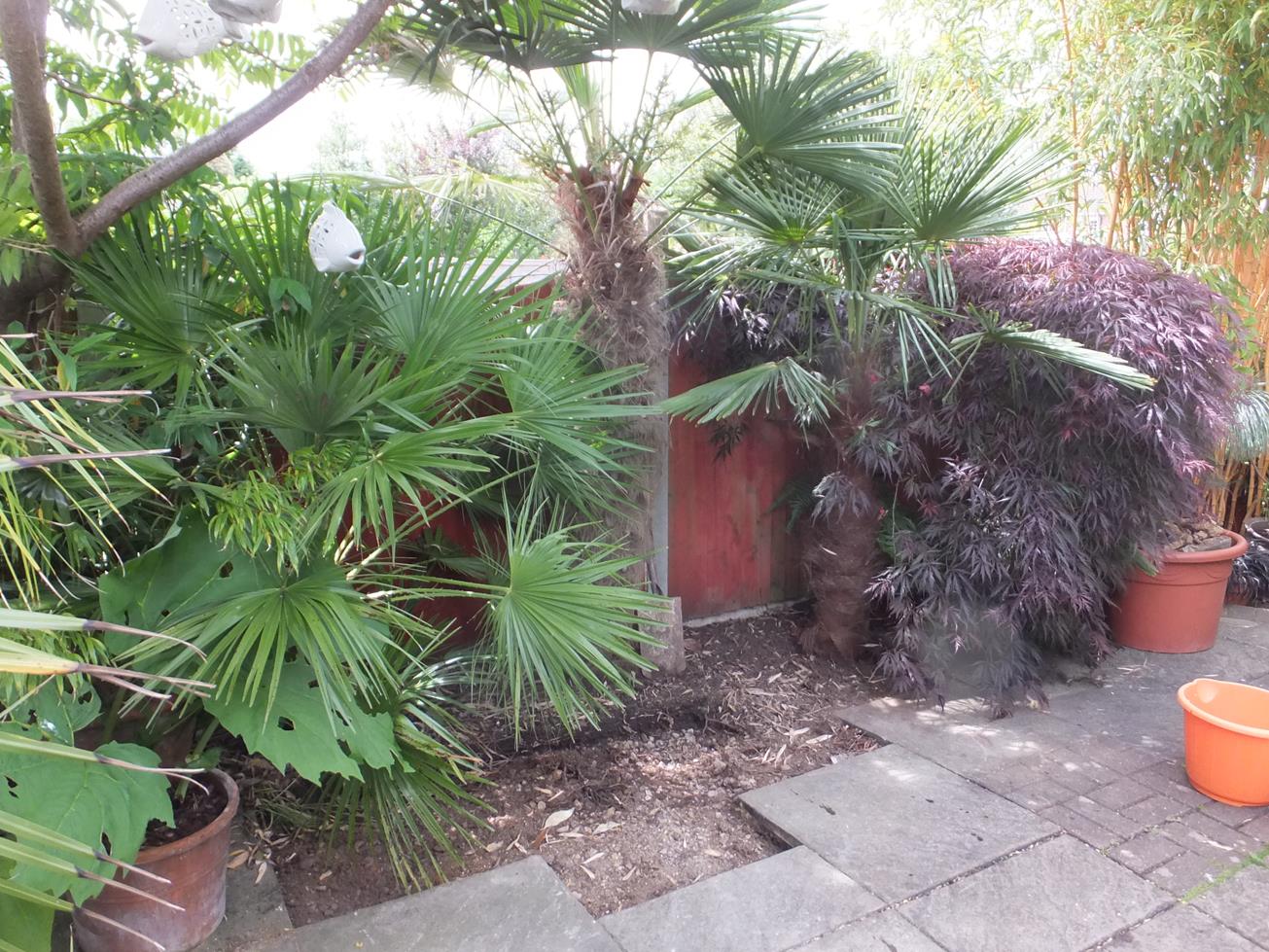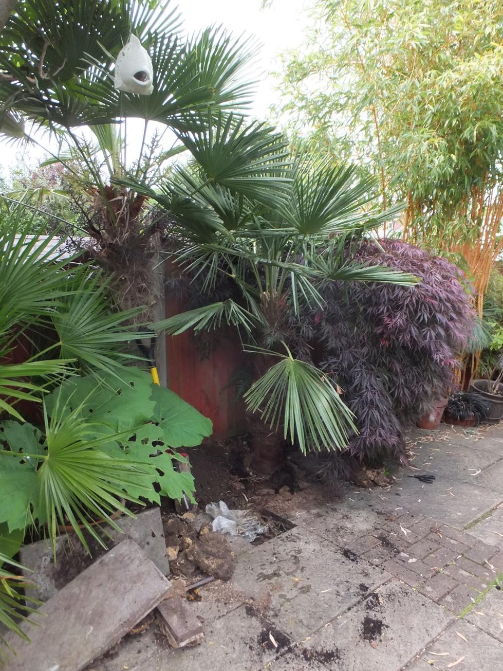 | The fibre stripped palm will be planted on that bare spot beside it, jutting out of the border |