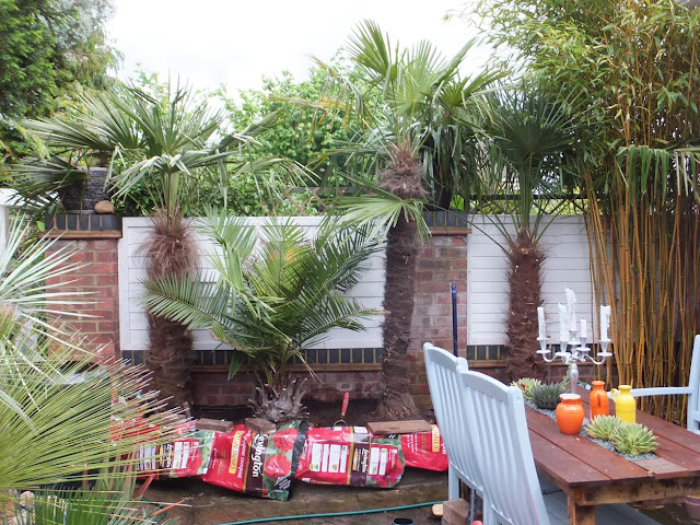 Then next would be the fibre stripped Trachycarpus wagnerianus at the front but that will have to wait until next week or so as it will be a big hole to dig. The palm would be a nice plant focal point in this border. Both palms are the two definite plants on our plans, we haven't figured out what else to put in the new spaces we created, apart from 'decorations' (to feature on a separate post).