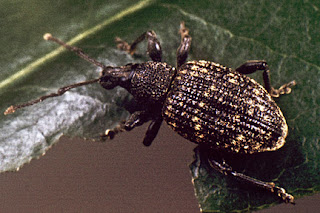 Many gardeners dread this garden pest, me included. For the first couple of years since we started gardening here I didn't spot any signs that this nasty bug was present in our garden. So far so good. Then later I spotted some characteristic notches on leaf margins of some of the plants. Suspecting that they are the dreaded vine weevil, I went out one evening (adults are nocturnal feeders) and there they were, adults munching away on certain plants. And if there are adults already, they are bound to lay eggs. And when the eggs hatch that's when the real problem starts.