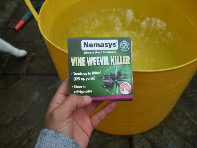 Think of the plants, think of the welfare of the plants, I tell myself. They need protecting from a particularly nasty bug that attacks, benignly from the outside as adults but as larvaes, fatally from the inside, within the soil, feeding on the root system of an afflicted plant. I am of course referring to the dreaded Vine Weevil.